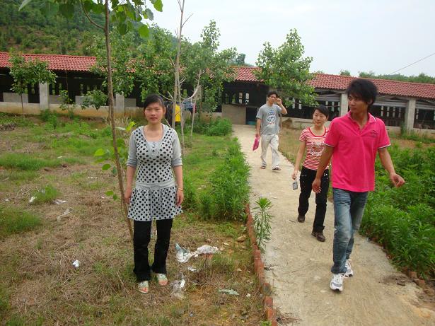 2008年毕业,回家后利用学到的养殖和兽医技术,把原来的猪场扩大规模。现存栏母猪200多头,商品猪3000多头。 下图为新来的女学员在李萍的猪场参观实习后和她的合影:(左一) &nb