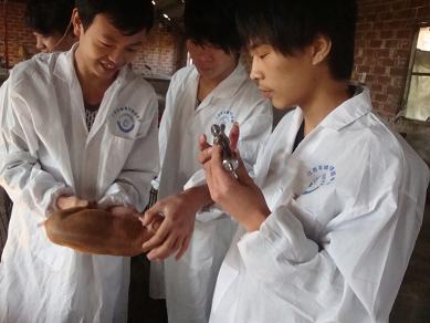 兽医,既要有扎实的实用理论,更要有动手的实操能力。丰城畜牧兽医学校历来把学生动手能力作为教学的主要内容。学生除经常在现场观摩临床,更要有人人动手操作的机会。下图为9月30日上午我校兽医班的学生在养殖场做猪的疝气及肠坏死切割缝合手术……