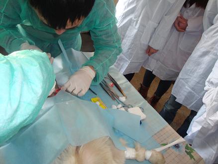 我校学生在做狗的节育手术实习