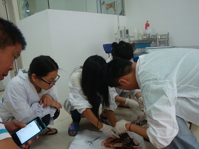 5月10日,我校动物医院接待了一只临产的苏牧孕犬。动物医院的医师通过对孕犬的检查、注射、消毒,1小时后为苏牧顺利的接下了6条幼崽。