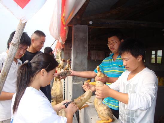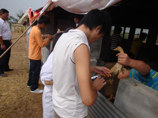 百闻不如一见,百见不如一做:我校在全国同类专业学校核心竟争力是技术实用且重在操作。图为鸭场防疫操作竞赛。
