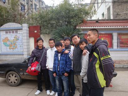 图为几位离开的学生在周老板的车旁留影