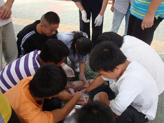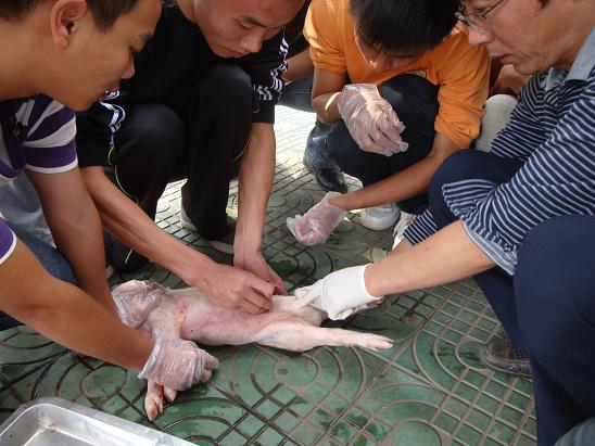百闻不如一见,百见不如一做:我校在全国同类专业学校核心竟争力是技术实用且重在操作。图为小挑花实习操作,接下来之(四)公鸡阉割与外科手术实习;之(五)为鸭场防疫操作竞赛……敬请留意!