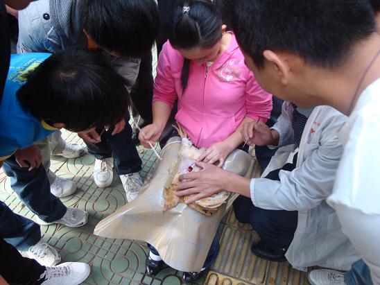 百闻不如一见,百见不如一做:我校在全国同类专业学校核心竟争力是技术实用且重在操作。图为公鸡阉割与外科手术实习操作,接下来之(五)为鸭场防疫操作竞赛……敬请留意!