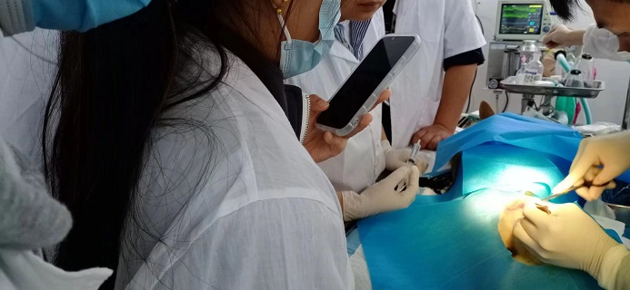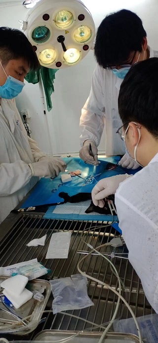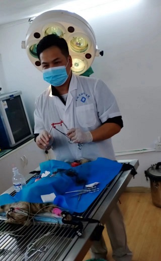 ▼从事宠物店多年的南昌区学员江先生,学习期间开车把店里的三只母猫带来学校绝育,全部独立操作完成