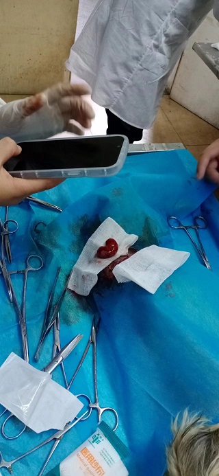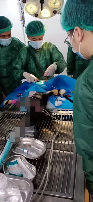▼学员们为慢性肾衰犬的肾摘除手术