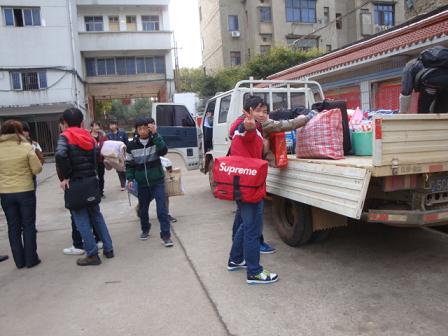 下图为同学们往车上装行李,赴养殖企业 带薪实践