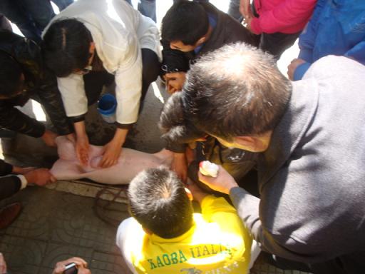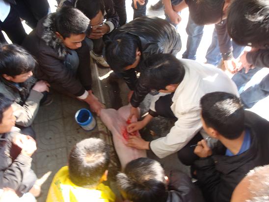 脐疝、阴囊疝、隐睾、小挑花、剖产术…这些手术是猪场最常见、也是较难的手术。如果不操作,则影响生产或生长,甚至死亡。开学不久我校就安排学生逐步接触这些手术,从开刀、组织切开、止血、分离、到结扎、缝合…百见不如一做。图为正在做脐疝和乳腺肿瘤切除手术。